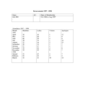 Attendance 1997 – 1998