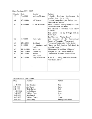 Guest Speakers 1999 – 2000