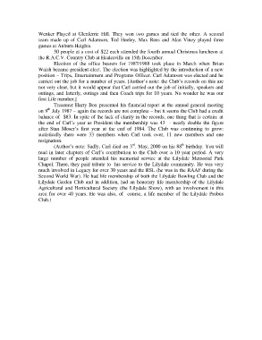 Election of the office bearers for 1987/1988 took place in March when Brian