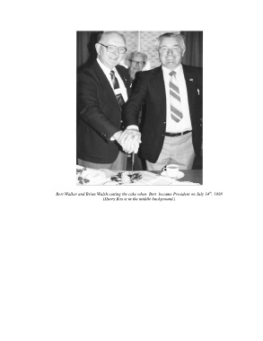 th Bert Walker and Brian Walsh cutting the cake when Bert became President on July 14 . 1988 (Harry Box is in the middle background.)