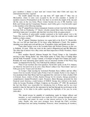comprehensive Annual President’s report. Treasurer, Harry Brennan, presented his first