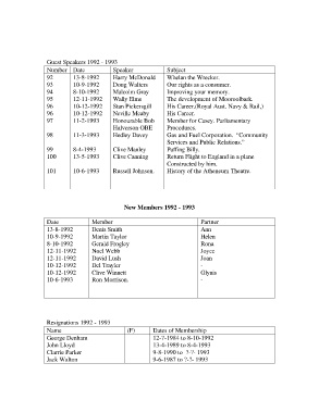 Guest Speakers 1992 - 1993